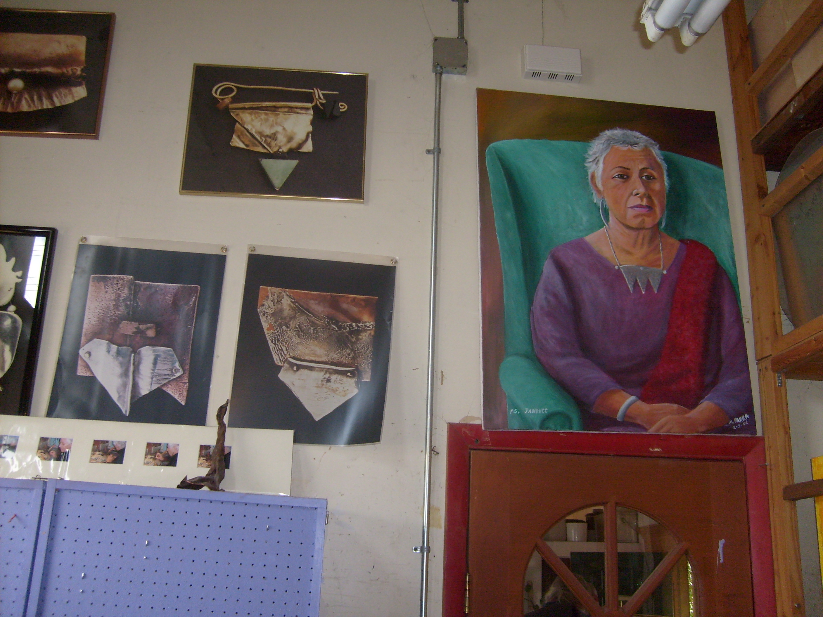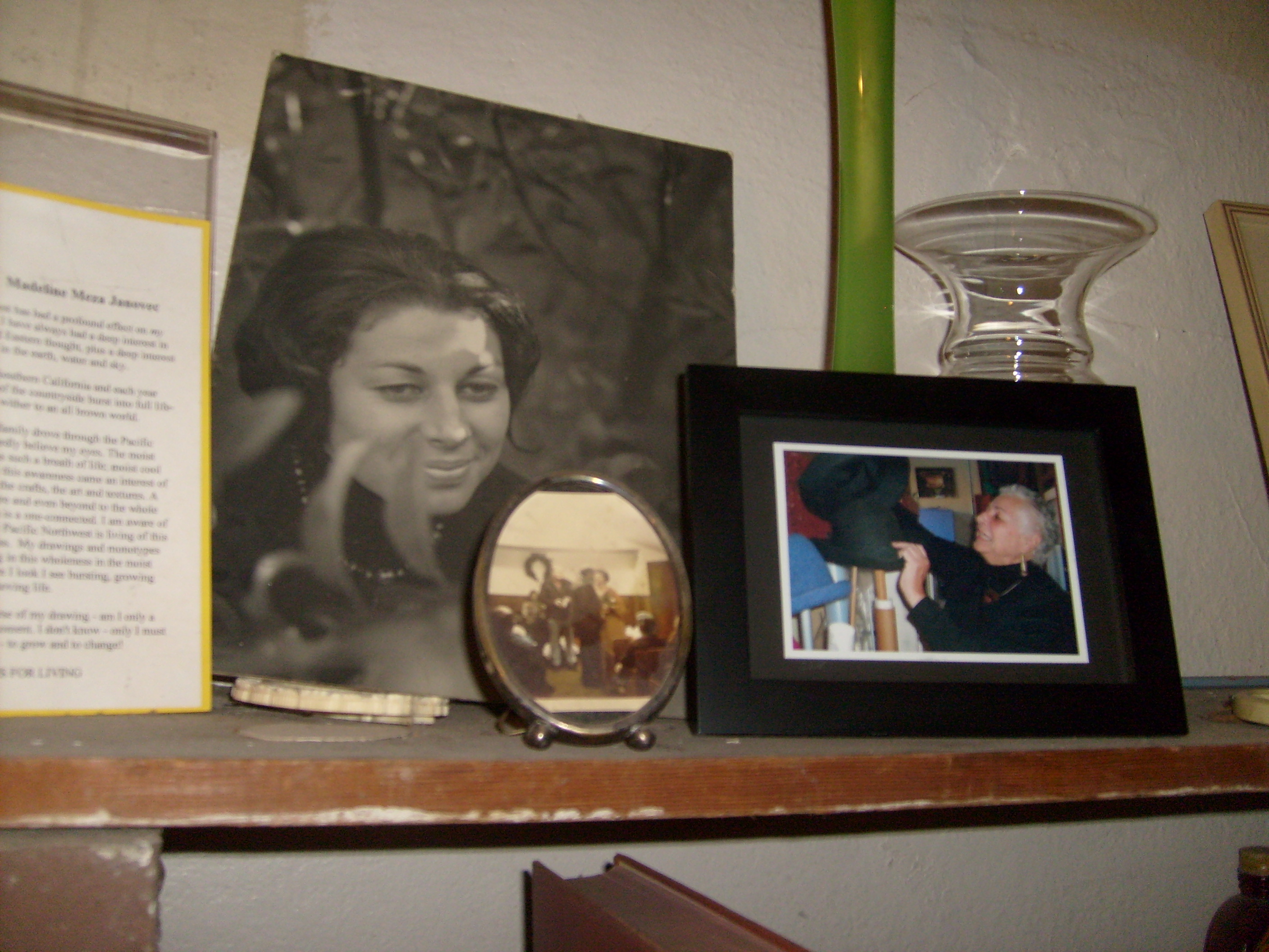 Many pieces sold at the opening, but many are still available. It’s a very extensive show and I urge Portlanders to go see this wonderful gallery. Madeline’s studio is still set up; she was working until the very end of her life. It’s quite inspiring. Her friends have set up little photographic altars throughout the studio so you can get a real sense of the work Madeline has done.