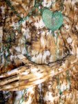 I’ve made a series of pieces where figures emerge out of the fabric. They are very hard to photograph, but I hope you can see this one well enough. This one is called “Not Out of the Woods Yet.”