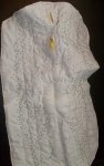 I love the way the fabric flutes around the figure. I originally mounted it on a piece of foam board but it looked too flat for me. I think leaving it to hang “naturally” makes it more inviting to the touch, too. What do you think?