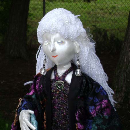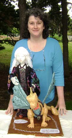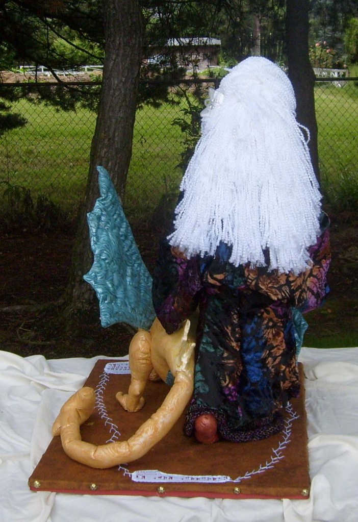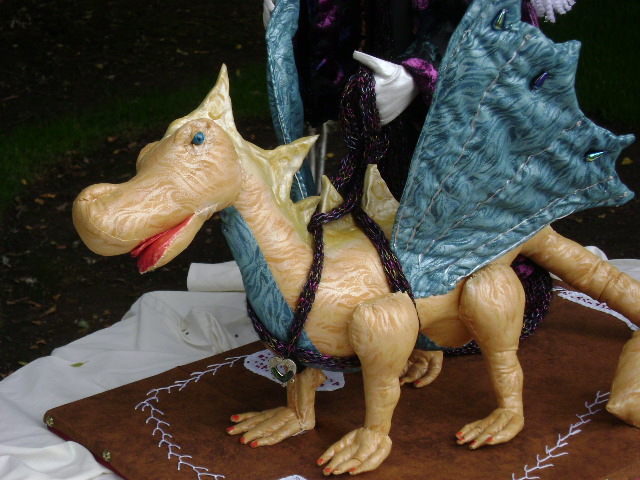 I finally got the last stitches done on my new fabric sculpture, Shared Vision: Blind Goddess and her Seeing-Eye Dragon. I’ve named the goddess Iris, and the dragon Aurora.