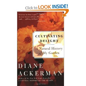I can’t let this opportunity to go by without promoting a favorite book of mine, Cultivating Delight, A Natural History of My Garden, by Diane Ackerman. She takes us through her gardening process by season. A poetic and discursive writer and natural historian, Ackerman’s book has been a huge comfort to me since I can no longer garden. I let her do the gardening and enjoy the lush descriptions of flowers, wildlife and the antics of that most peculiar of species, the human gardener.