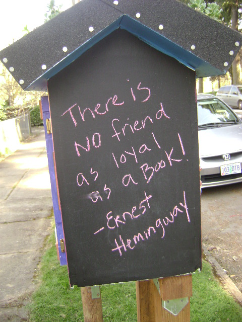 I wanted to share with you one of the new trends in book distribution, the Little Free Library, one of which opened in my neighborhood in north Portland, Oregon.