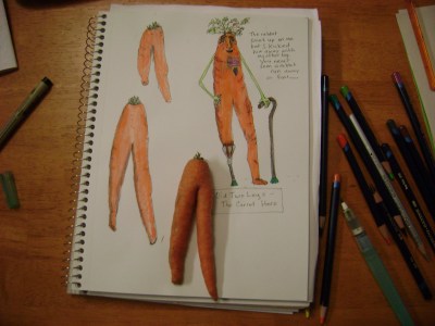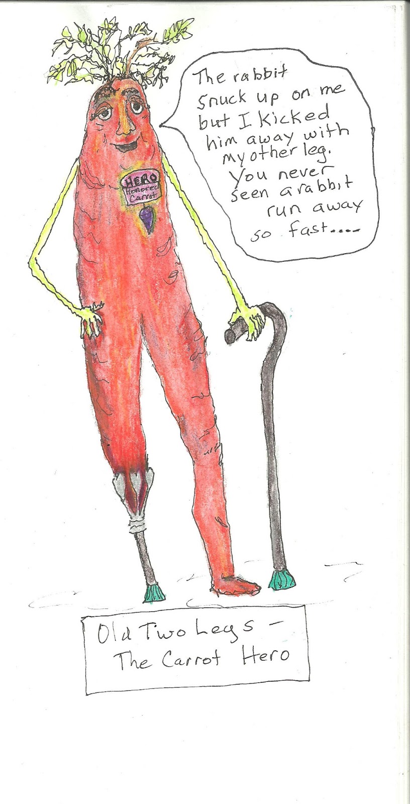 1. Haha…Joy, this is a joy to see how the minute and simple things in life inspire us to come up with some story or some art; something different! You have done a Great job! LOVED your Carrot Hero!