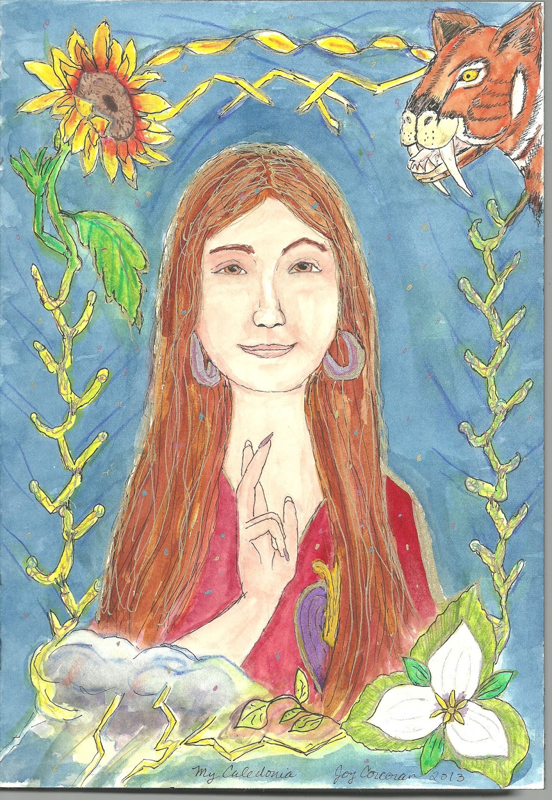 So for my daughter’s 29th birthday, I painted this.  A little tongue in cheek icon to My Caledonia, who has the spirit of sunflowers, sabertooth tigers, storms and wildflowers in her soul.