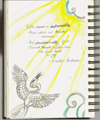 While I’ve been on blogging break, I did keep my journal.  I made a commitment at the beginning of the year to stop resisting and write every morning.  I’ve succeeded in writing every single day this year!  I keep the journal right by my bed and write first thing.  It’s not always coherent, but it sets a creative tone for the day.