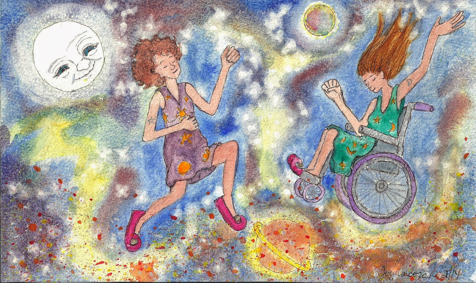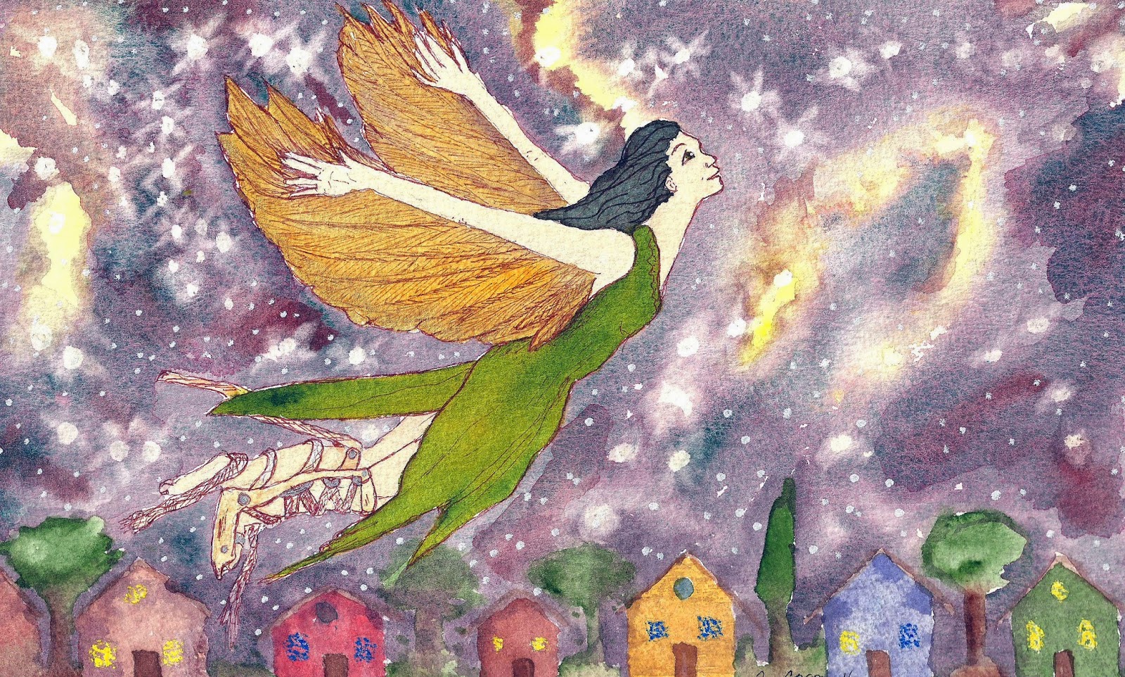 Uplifting art and lyrics. I was talking to my students today about dreaming I could fly. Your art helped my dream come true! I especially love the piece with the girl reaching up and touching the orange ball(moon? Sun? a planet?). Really cool animation! Congrats!
