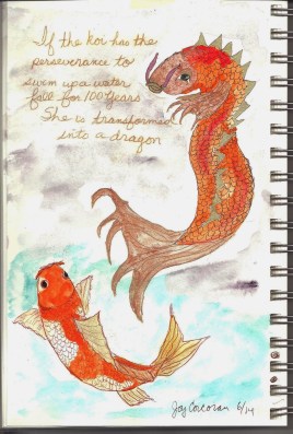 The koi are some of the most beautiful fish. You certainly have captures not only their color and shape but their action and movement as well. Your sketch book is very impressive. I love your dragon Koi too. LOL