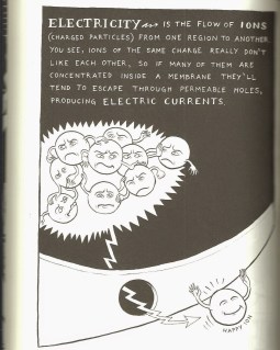 The story format helps illuminate both what is known and how much is still not known. It’s a mysterious world, the world of the brain, and Neurocomic celebrates that mystery as much as the science. Ros states in a video about the book that it’s difficult to explain what’s going on in the brain without the use of metaphors. That our brains can make metaphors is miraculous to me, and that we can understand so much more about everything in terms of story and metaphor is, I think, the most comforting thing about this book.