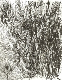 “Its wall hung with wooden shingles, and where they were missing, dark gaps grimaced like a mouth with knocked out teeth. The front door hung open at an angle, and the single window had warped and popped its glass. The only thing to remind me of home was the bramble that scrambled across the roof and dropped in loops through the gaps in the shingles that were nailed there too. Searching for light, the bramble had reached the window and now stuck its blind tendrils out, beckoning us to join it inside.