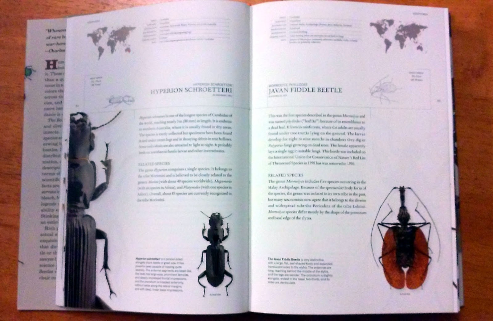 Each entry features a distribution map, basic biology and information on the cultural significance of each beetle.  Crisp, beautiful photographs show the actual size of the beetles and enlargements show the exquisite details.