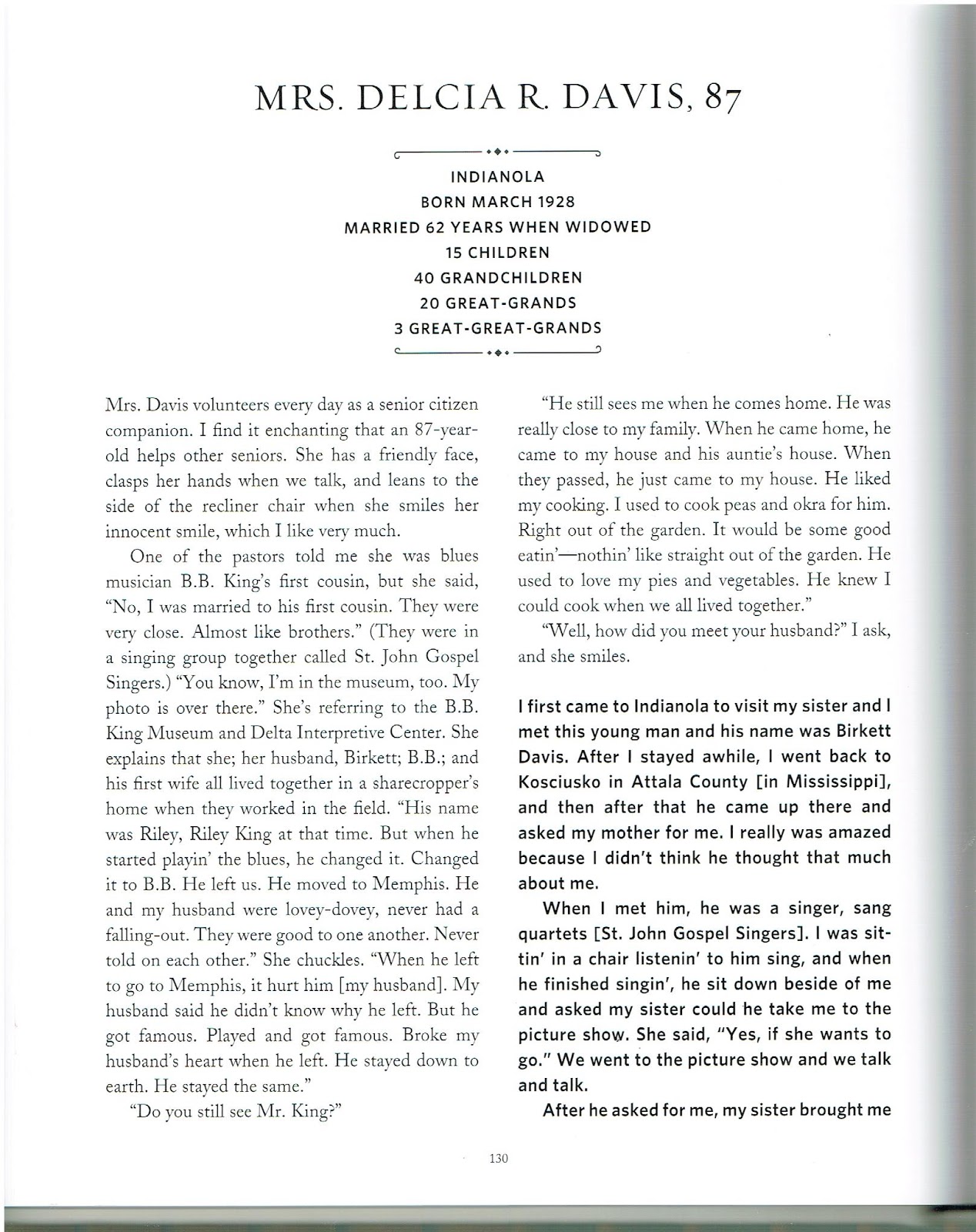 These are endangered stories that need to be preserved so that we can see where we came from and what the future might hold for us. These women have shown grit, determination, and faith. They’ve faced turbulence all their lives, without the blinders we have now that we are saturated by technology. We’re a richer nation because of them. Take the story of Mrs. Delcia Davis. You can click the pictures to enlarge them: