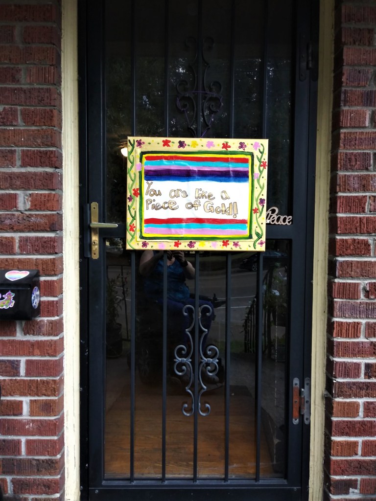 I have a great sign on my front door that was made for me by a young person while I lived in Portland. She was one of my art students. I have had to repaint it a few times because it gets battered by the weather.