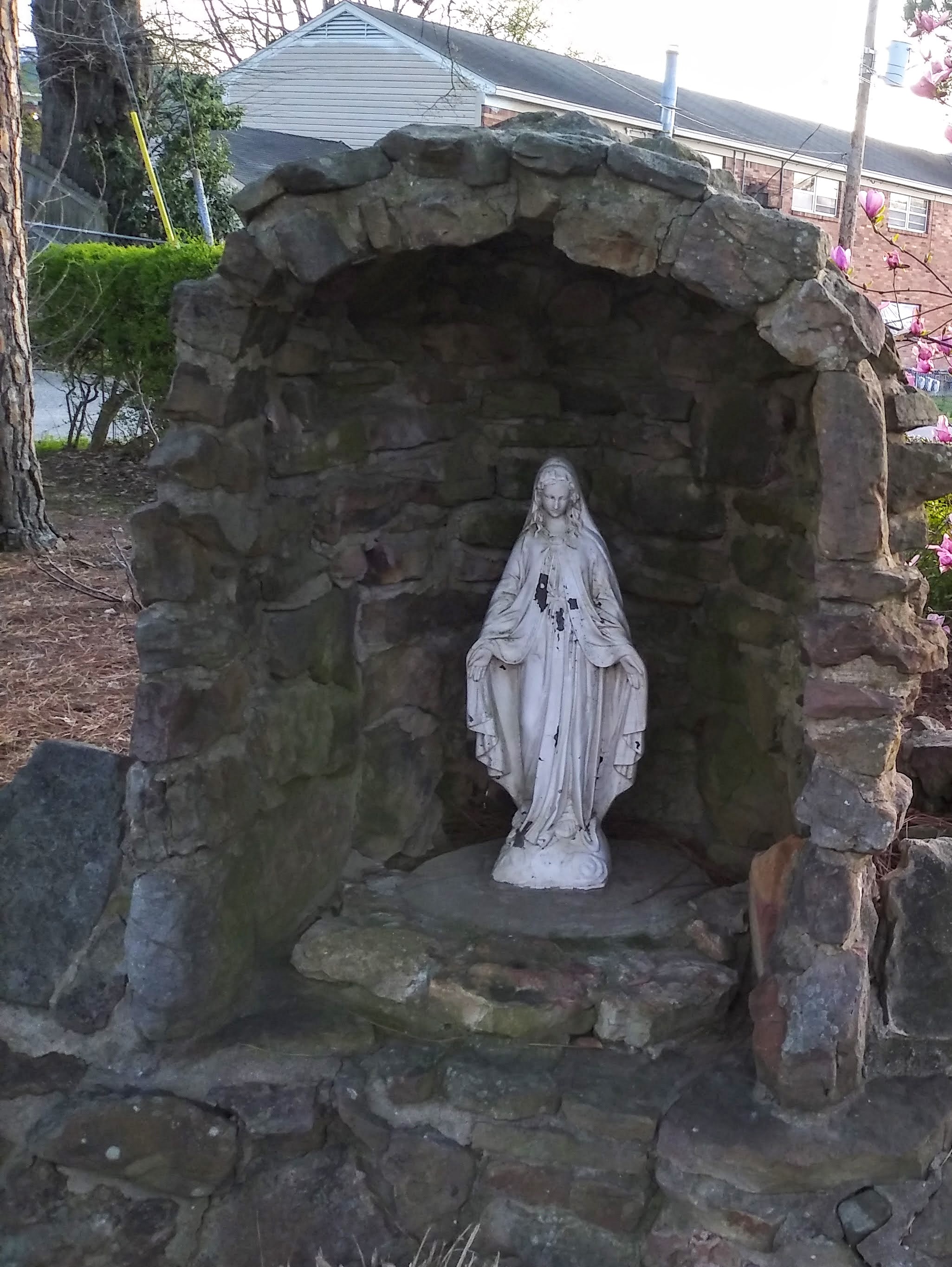 There’s a little park adjacent to a school across the street from me. They have huge planters arranged in a circle with stone benches and a small altar for St. Mary, because it used to be a Catholic school.