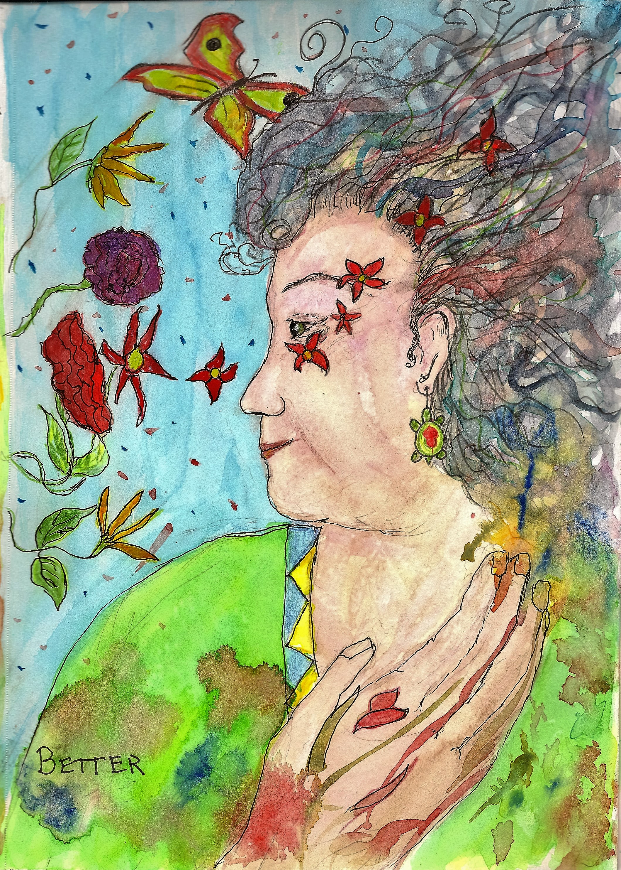My GP was encouraging. My triglycerides and my blood sugar are both down. I was glad to talk to her. While I waited in her office, I sketched, nothing much, but it sparked the memory of how much I used to sketch during waits for buses and doctors. I started missing my sketchbook. I’ve stopped using it. Some of my internal scaffolding has broken. I can’t clearly see the point of all this scribbling and drawing anymore. Haven’t for a while — since COVID? since I had to start using the wheelchair full time? Since the beginning, way back in childhood? Sixty years old and I still let negativities restrain and sabotage me. I don’t even carry a sketchbook anymore, just my calendar with some blank paper. I used to have a whole kit, pens, pencils, paint all tucked like secret joy weapons in my bag.