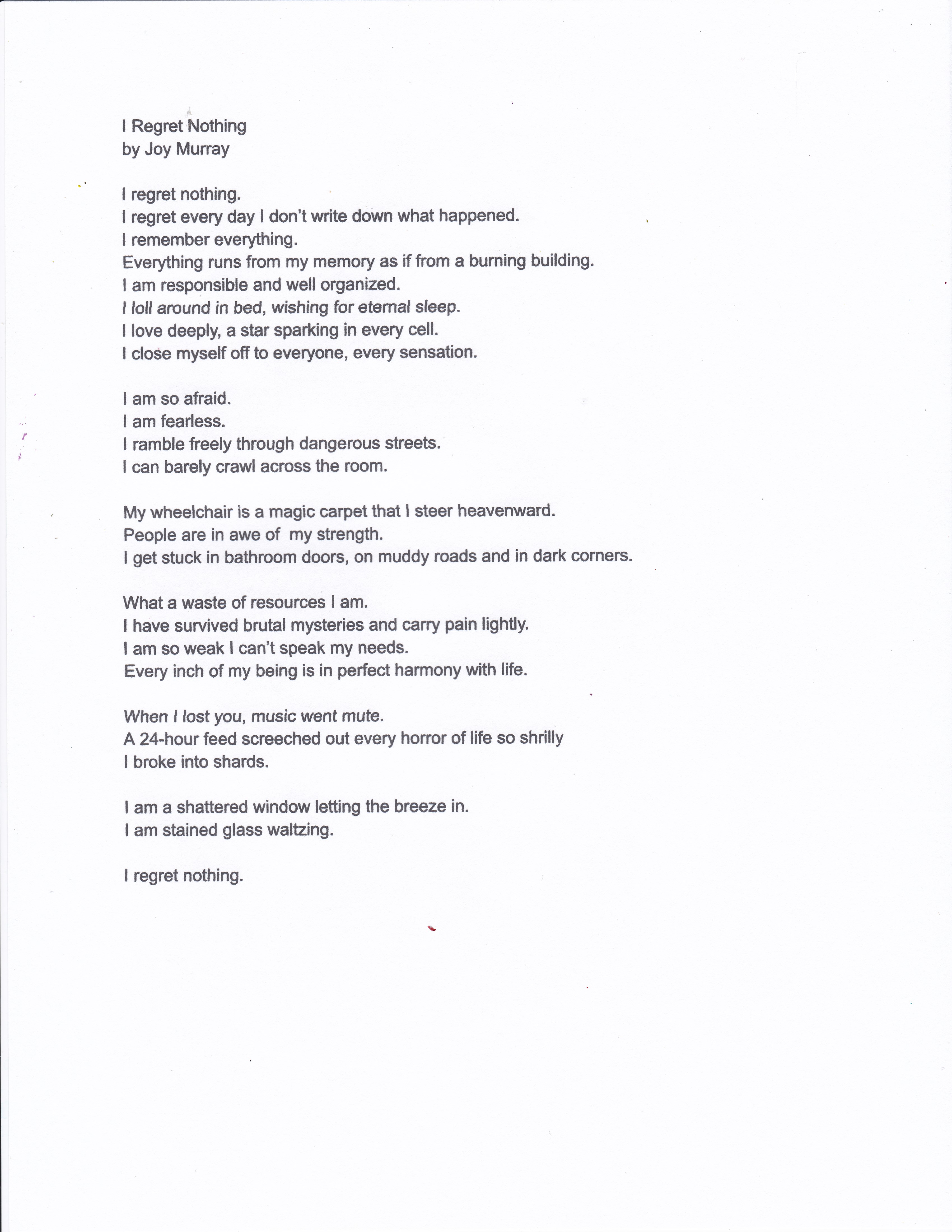 3. I feel so stupid sometimes when I want to write a comment and I don’t know how; it does happen when I love something so much, felt so much. It has happened when I read this post of yours today. You have a very special educational background in terms of creative writing and I love it when someone has the courage to say that s/he does not want to follow the idolized current. But I am appealed even more by what you did after that, I mean your writing and visual writing as an inner need, which is the real act of creating a thing. It’s a beautiful poem hard to read, painful to feel. A comment is never enough, but I hope I said what I meant, at least a small percentage of it. Thank you, Joy.