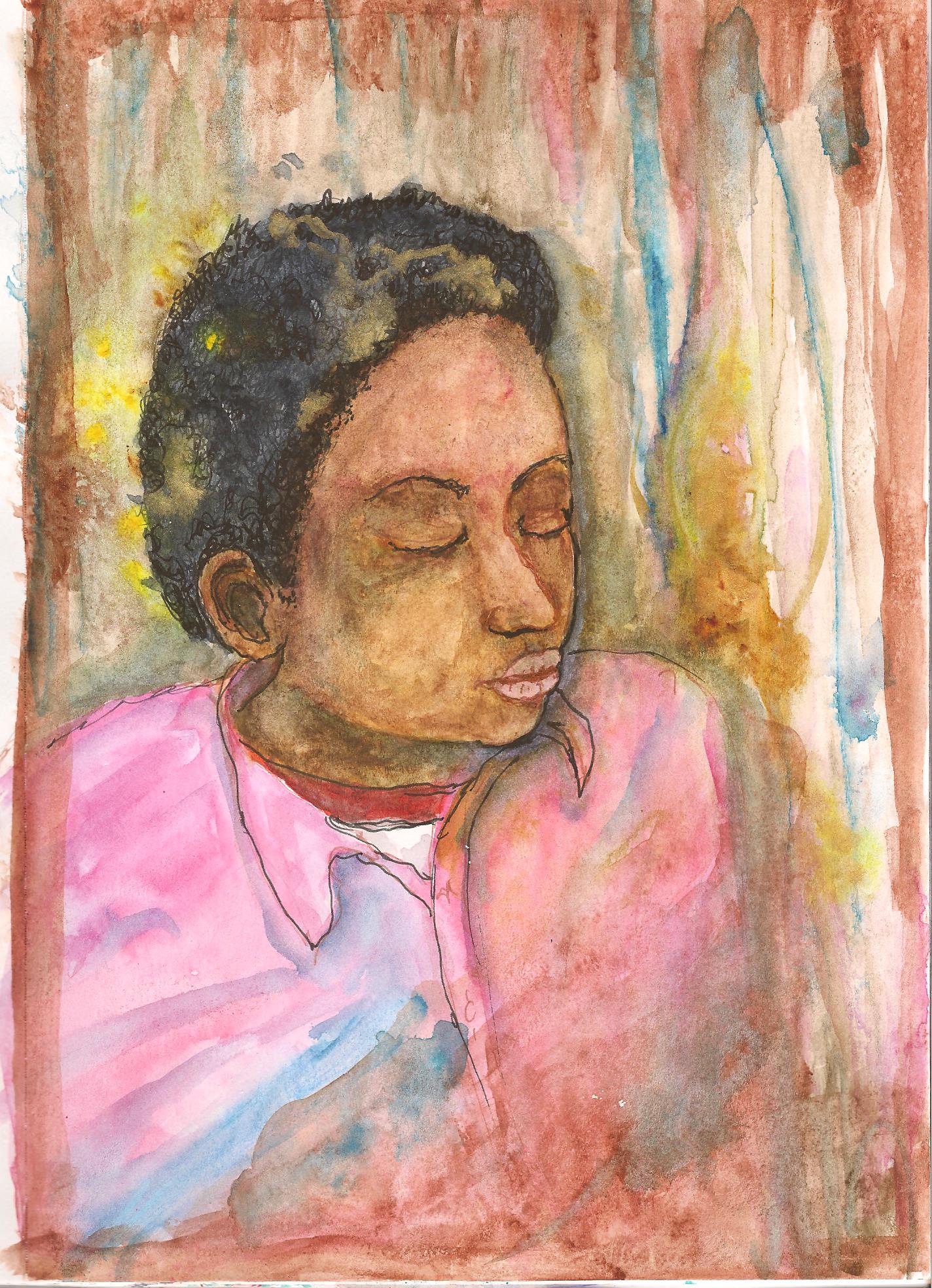 I’ve been working mostly in acrylic painting for the past 8 years, but I always keep some watercolor around because it’s easy to start and clean up. Plus, it works well with drawing. I also like the unpredictable nature of it.