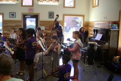 The orchestra is from Rosa Parks, the elementary school a few blocks away from Bridge Meadows, where I live. The orchestra started last year with an intensive music program and now the kids are performing in venues all over the city. The kids have various levels of mastery, but they’re all living better lives because of the Bravo Program. Here’s their Mission in their own words from their website: