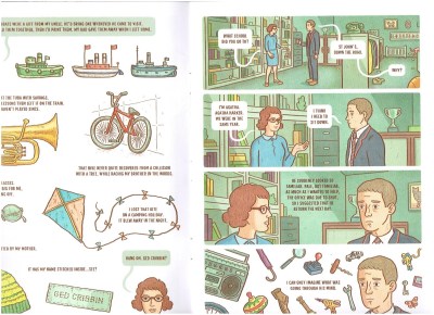Lost Property, by Andy Poyiadgi, is almost an opposite kind of story. It’s about a postman who is able to correctly deliver hundreds of items every day, but easily loses his own possessions. One day, he gets a call from a lost property shop, saying they’d found a letter opener inscribed with his name.