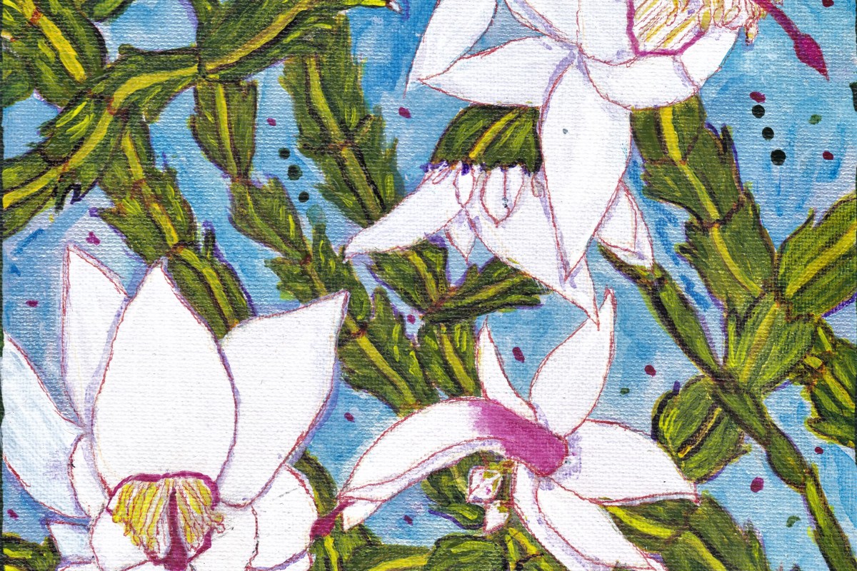 “Schlumbergera is a small genus of cacti with six to nine species found in the coastal mountains of south-eastern Brazil. These plants grow on trees or rocks in habitats that are generally shady with high humidity, and can be quite different in appearance from their desert-dwelling cousins.” (Wikipedia)
