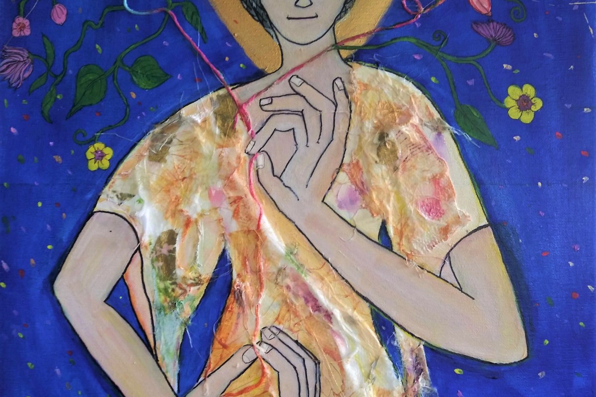 So I painted her in and added layers and textures. As I painted, I thought about how much about life we don’t understand. I thought about disability, trauma, and how little sense life seems to make sometimes.