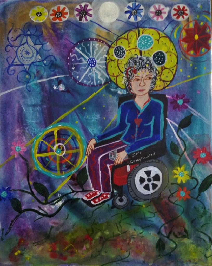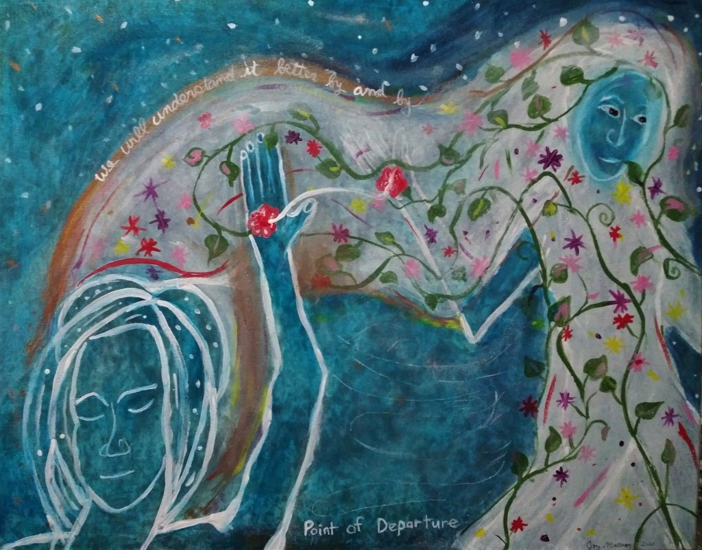 The past few years, the pandemic has made getting medical care more complicated. I have gotten sick and weak in ways I haven’t had to deal with in the past. My doctors have changed my medications with not good results. The world around me seems to make less and less sense, I seem less and less powerful. Since the fall of last year, I’ve felt my creative spirit shrinking, felt too weak and depressed to paint. I can gather up the energy sometimes, but the daily flow of my life seemed to have slowed to a trickle. My vision narrowed.