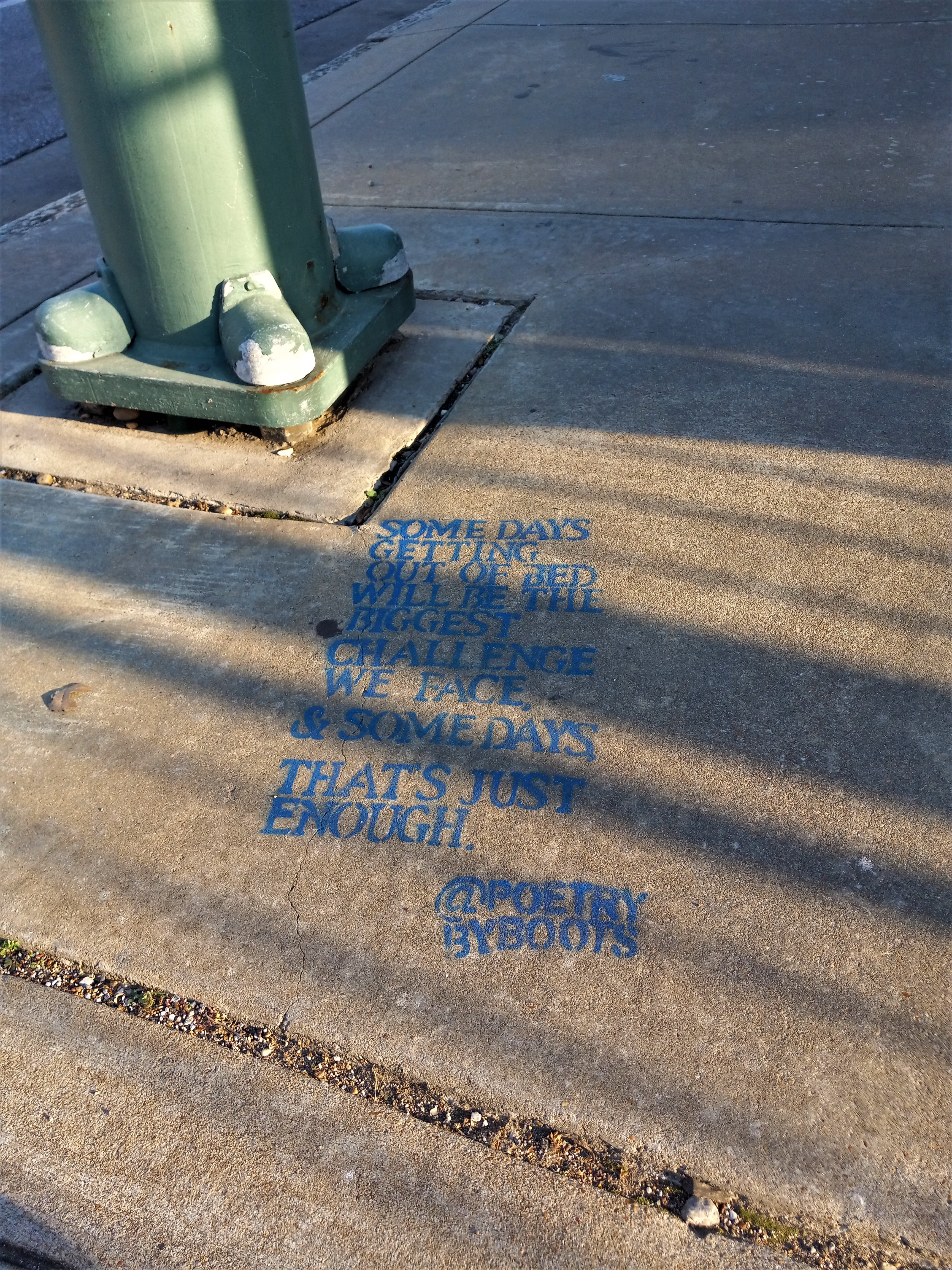 Sunday, my friend kept pointing out @poetrybyboots poems stenciled onto the sidewalks. I was a little alarmed that I hadn’t noticed them.