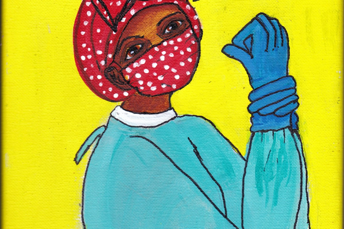 I’ve been worried the impact this pandemic is having on vulnerable children. I always have them on my mind because I have been one and I have worked with them, using art and stories to help them sort out their lives. This painting started out as more of a cosmic abstract, but it changed to a child.