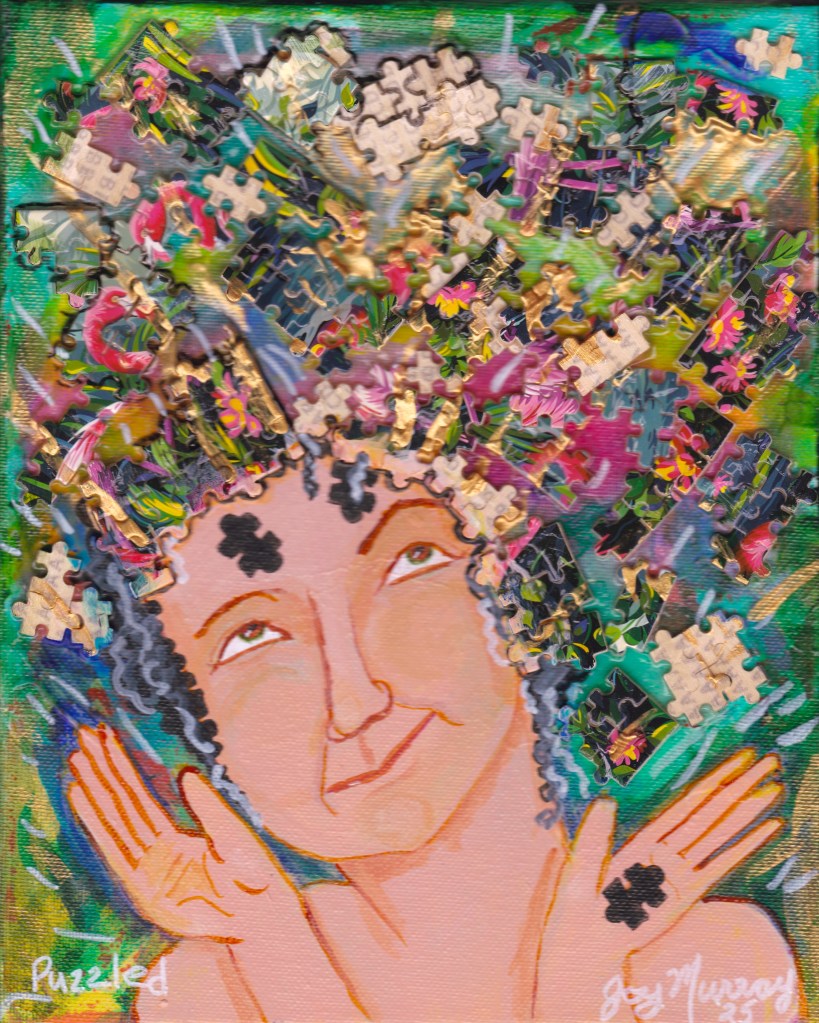 And that in turn gave me permission to move forward with creativity and beauty when so many pieces of civility, kindness, and love are missing in our country. There’s so much uncertainty in healthcare and in our collective support of each other. But I need to focus on those who are moving forward with bravery and love and creativity to fight the erosion of values we see around us. This country’s puzzle may never be put together into a unified picture, but a lot of the parts are working, are beautiful. I’m puzzled on exactly what to do, but I’ll keep trying, in my own crazy way, to support those who work to make America just and kind again.