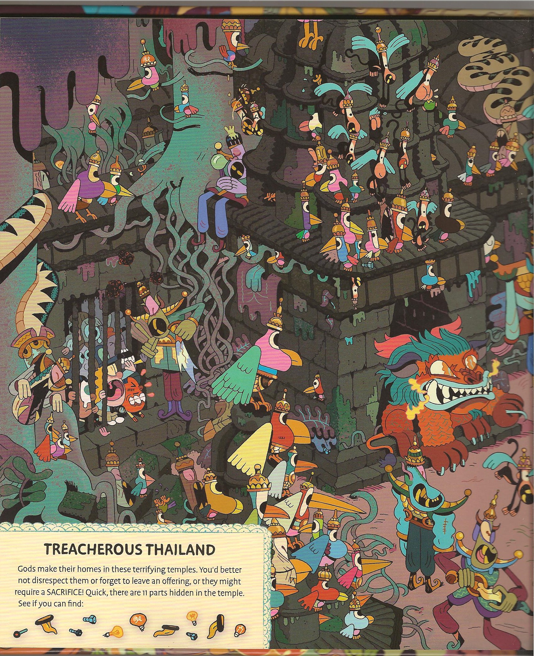 In this parallel dimension, cities are inhabited by their ghosts, myths and monsters. In order to help rebuild the contraption, you have to find parts to it that Dr. Felinibus has hidden in each city. Pablo, Jane and Dr. Jules race thorough Ageless, Athens, Macabre Mararkech, Nocturnal Norway, and, to Noah’s delight , Treacherous Thailand (he’s of Thai heritage.)