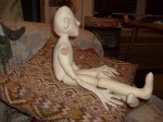 I love the way the fabric flutes around the figure. I originally mounted it on a piece of foam board but it looked too flat for me. I think leaving it to hang “naturally” makes it more inviting to the touch, too. What do you think?