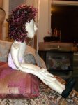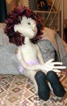 I finished my new fabric art piece today — a sort of combination doll, quilt and wallhanging. I often see a figure in the pattern of a fabric — in this case a kind of blurred birch bark print — I don’t really know why. I also often “see” patterns of color when I look at people. When I was younger, I had epilepsy and used to think I had second sight and could see people’s auras. Now I just think I have a visual blip that’s kind of cool. You should see the characters in my dreams.