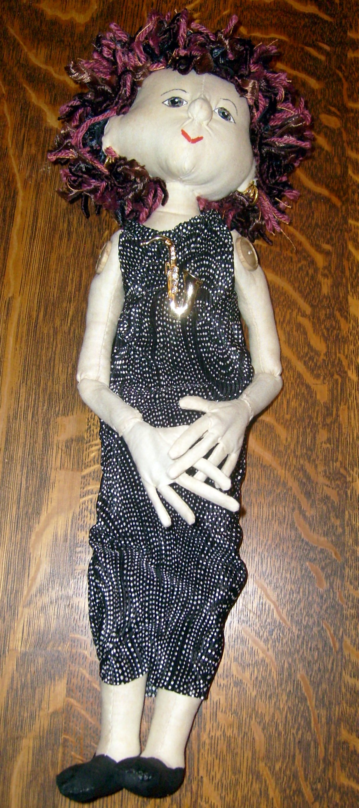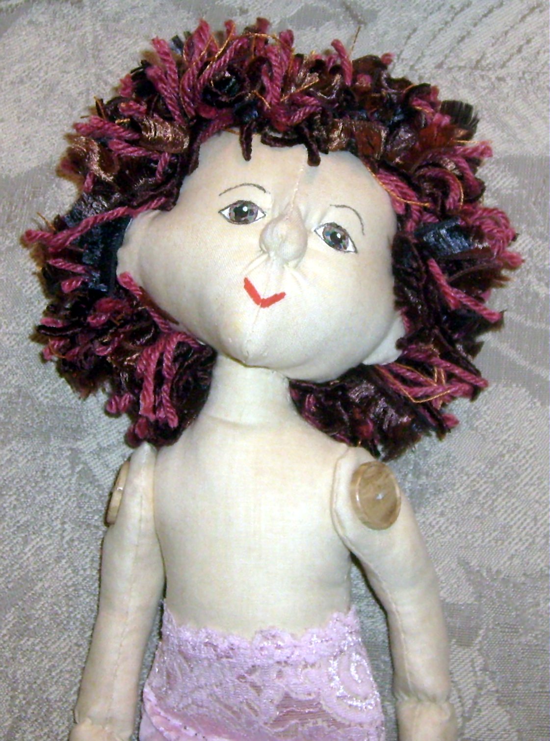I finished my new fabric art piece today — a sort of combination doll, quilt and wallhanging. I often see a figure in the pattern of a fabric — in this case a kind of blurred birch bark print — I don’t really know why. I also often “see” patterns of color when I look at people. When I was younger, I had epilepsy and used to think I had second sight and could see people’s auras. Now I just think I have a visual blip that’s kind of cool. You should see the characters in my dreams.