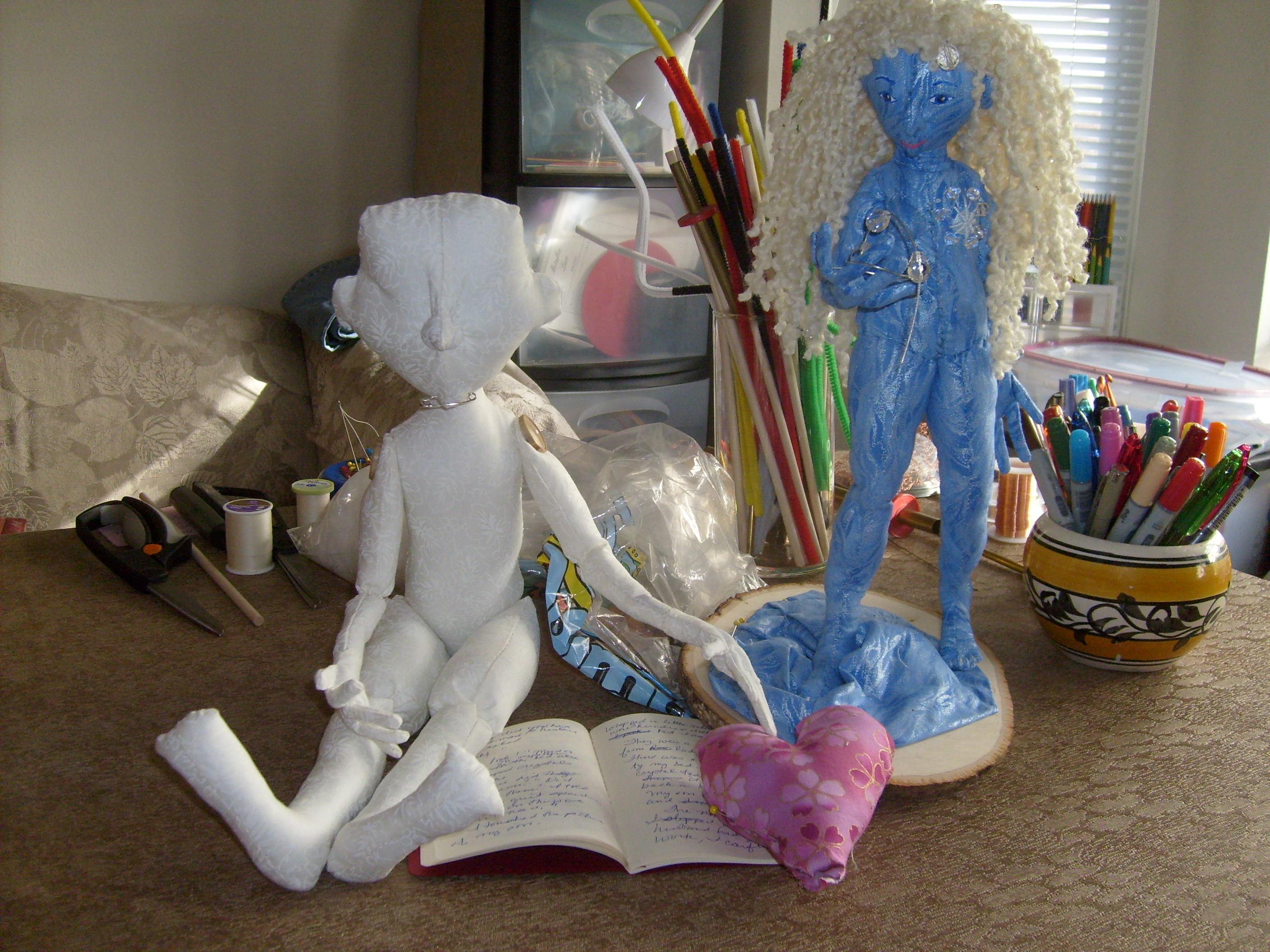 So I got the idea to do an homage to scars, and have been working on doll who has had a mastectomy called Survivor, a sculpted doll about 18″ high. It’s gone through many transformations (no surprise) and taught me a lot about how to balance things and make good armatures.