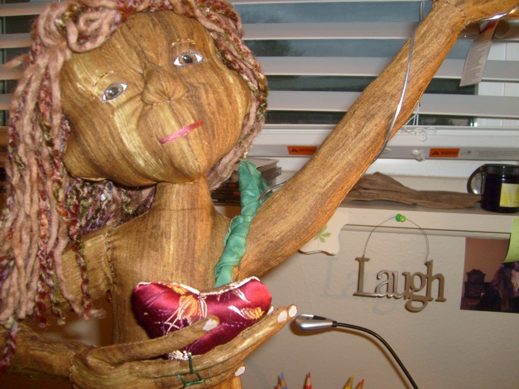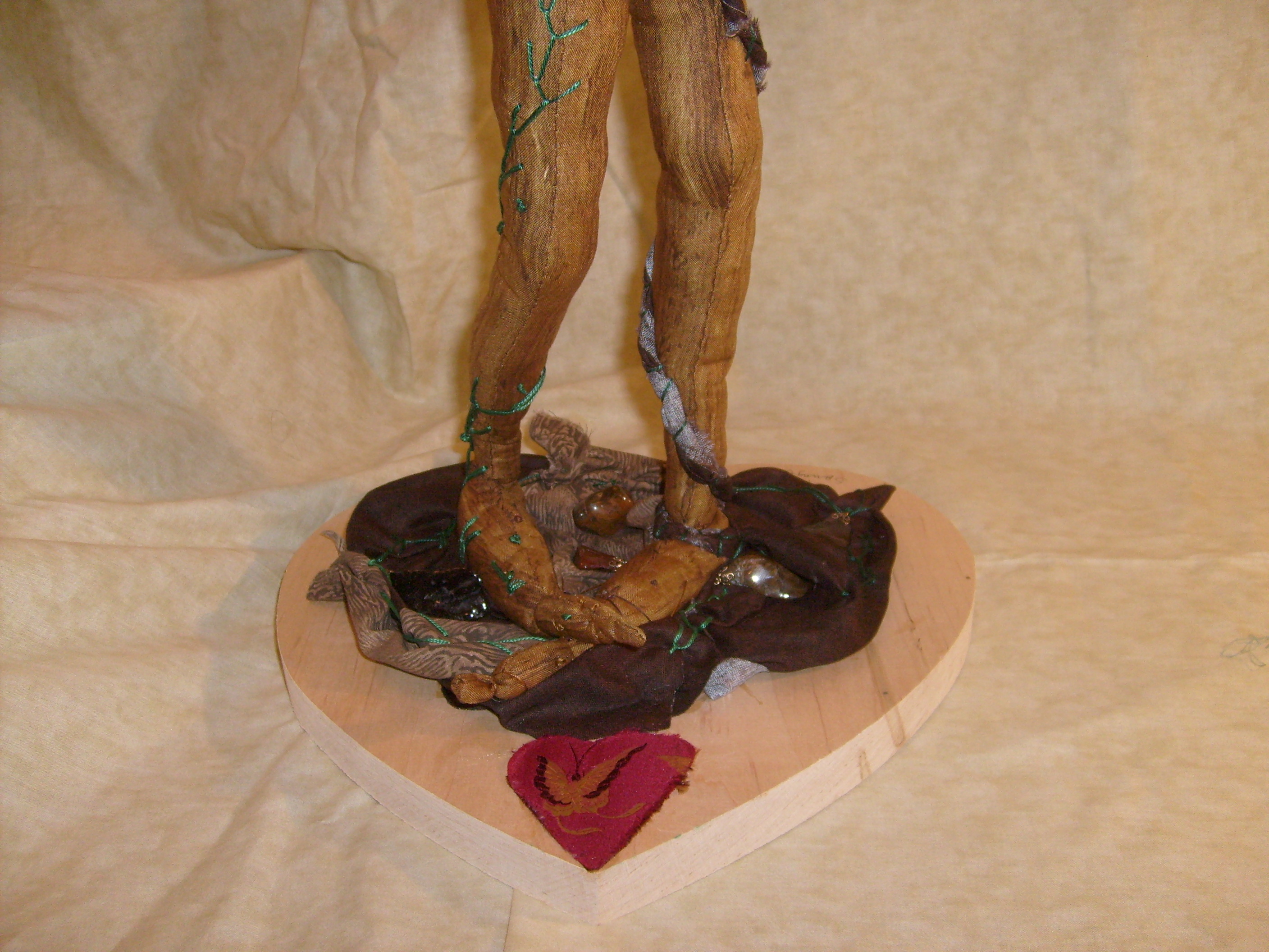 But when I work through the adjustment, I get this kind of soaring feeling. “Hey I can live with this!” I had been making art dolls for about half a year and decided to make a doll that told a narrative about learning to limp. I imagined myself caught between forms – I was not walking well anymore, but one day I’d be free and fly off this planet. I was becoming a bird, but I couldn’t quite fly and I couldn’t quite sing yet. I was caught in this absurd place with a beauty all its own.
